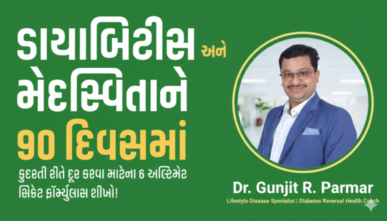 આ ખાસ વર્કશોપમાં Dr.Gunjit Parmar રોજિંદી જીવનમાં અપનાવી શકાય એવી સરળ અને વૈજ્ઞાનિક રીત 6 Ultimate Lifestyle Formula સમજાવશે — જેના દ્વારા ઘણા લોકો એ શુગર લેવલ સુધાર્યા , જિદ્દી પેટની ચરબી ઘટાડી ને પોતા ની તંદુરસ્તી ફરી મેળવી છે — ફક્ત ૩ કલાકના Online વર્કશોપમાં